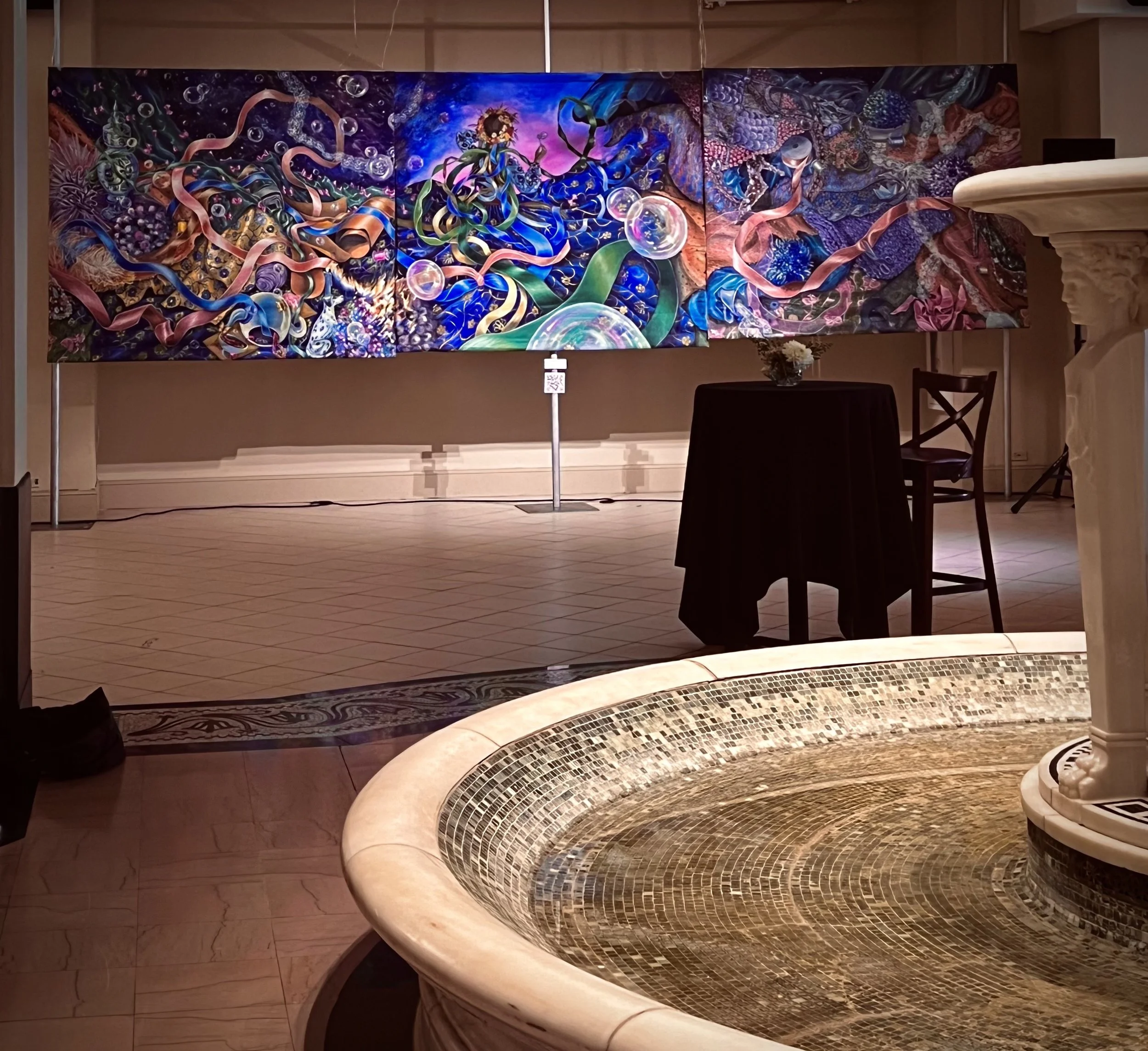 “New Growth”, is the final painting in the triptych series. The 3 pieces hung together each blend into each other, a painted tapestry.